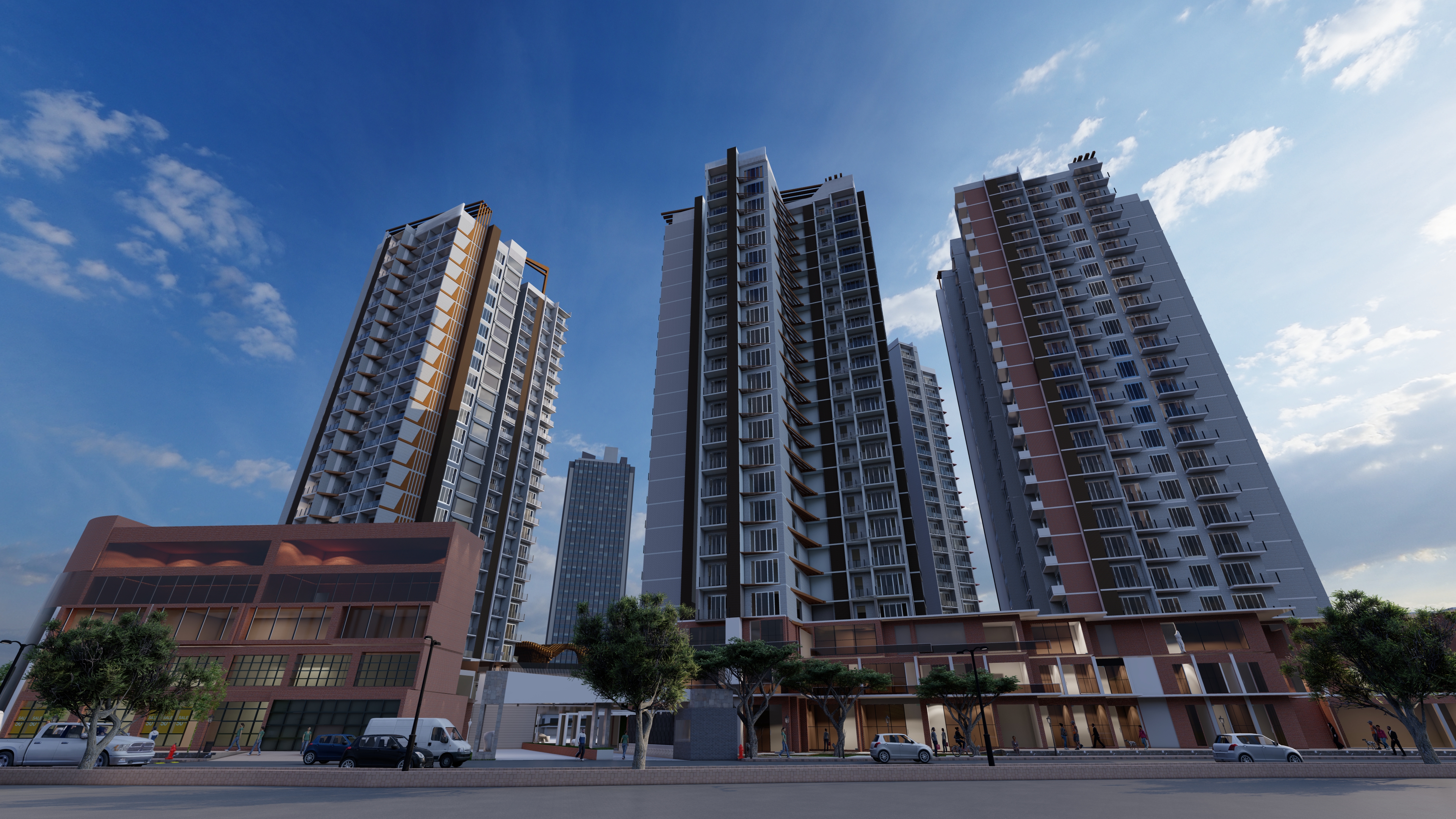 Mixed-use highrise building is a more unified mixed and architectural solution, with