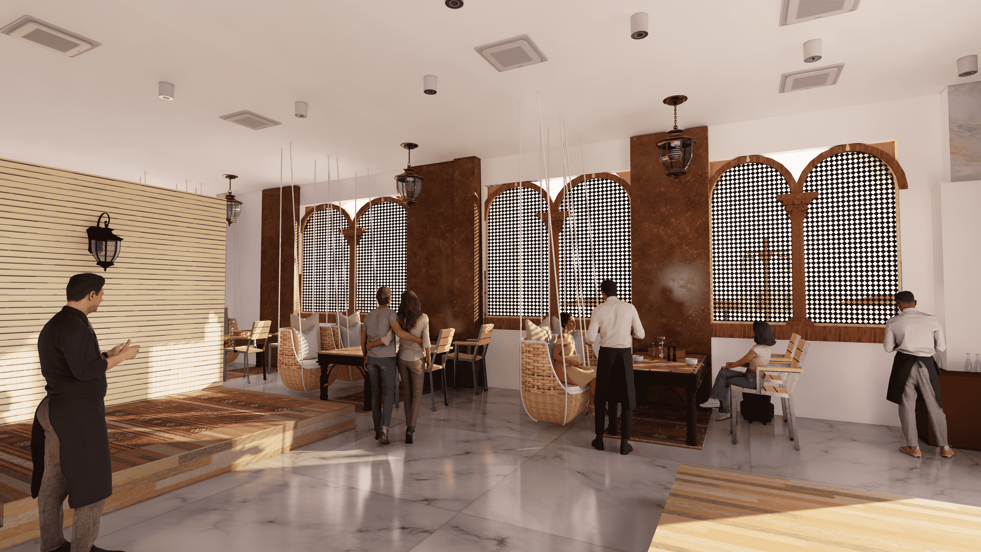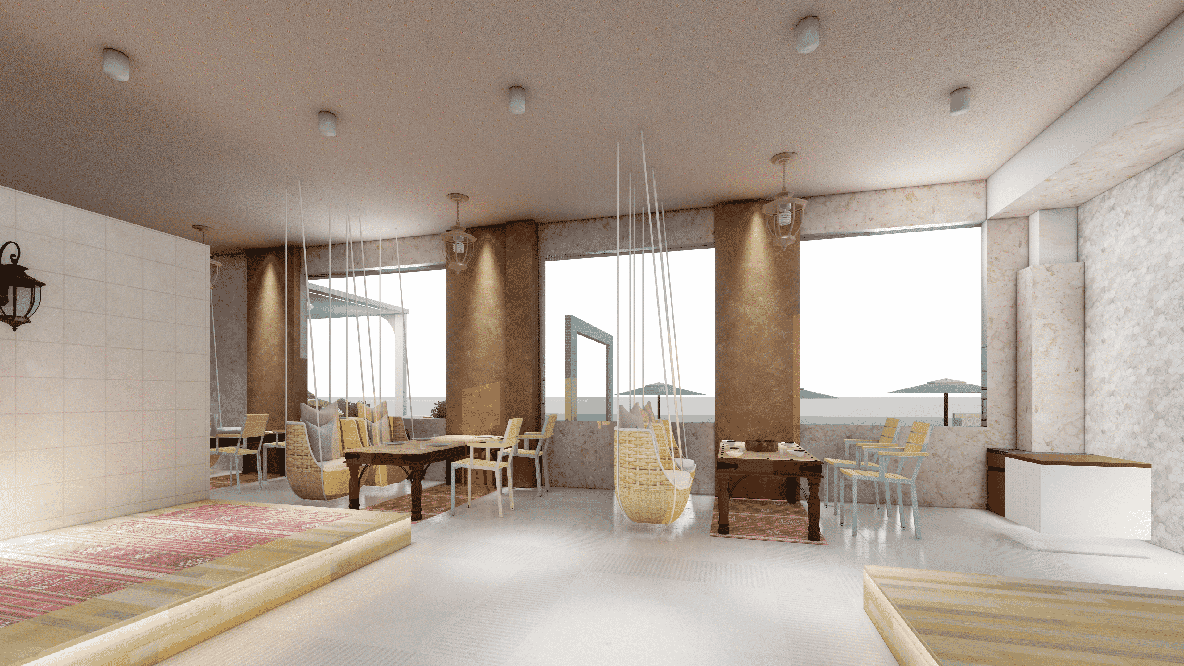 Overall, the interior design of the patio is modern, stylish, and comfortable, making it an ideal